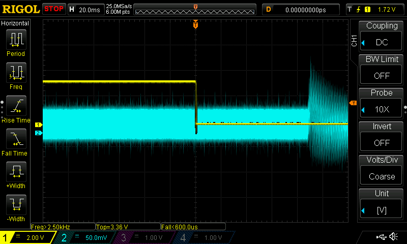 (Above) Ultimate-64 Analog Audio Latency (Simulated SID) After Joy Button Press - 35ms