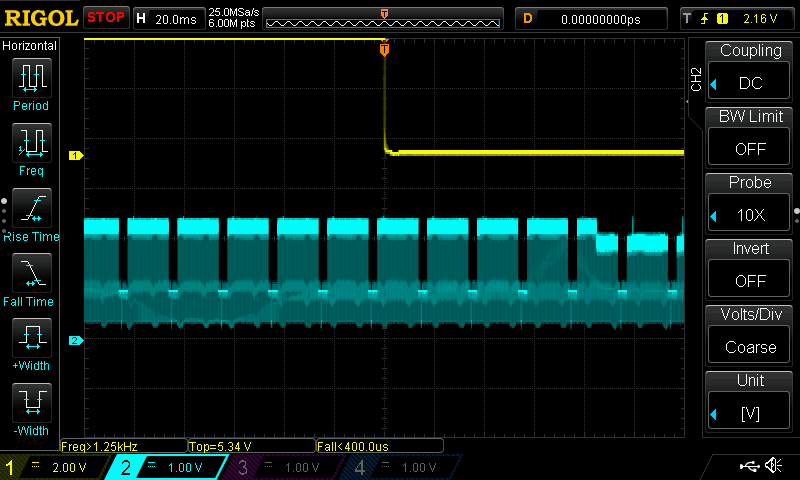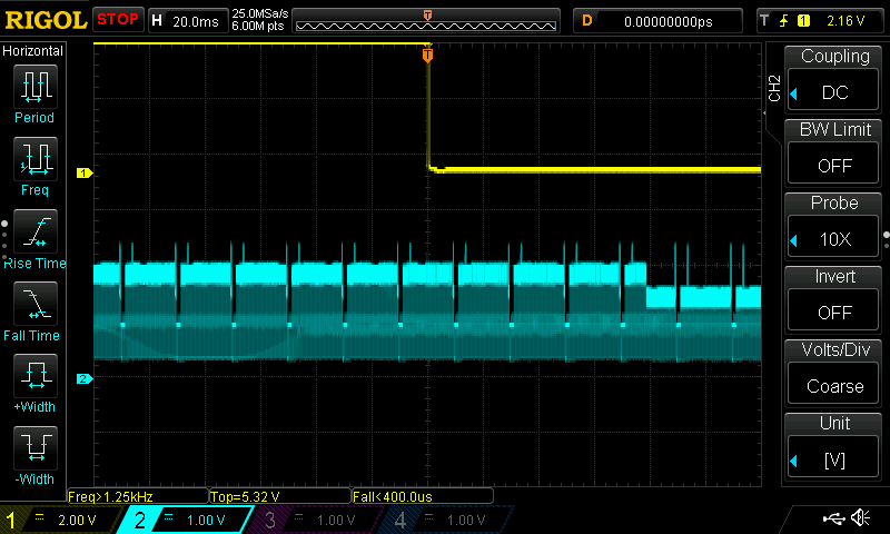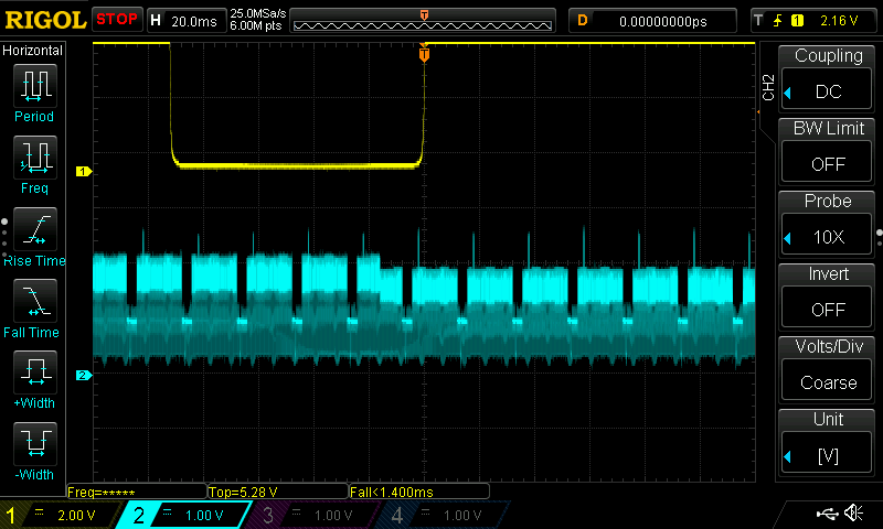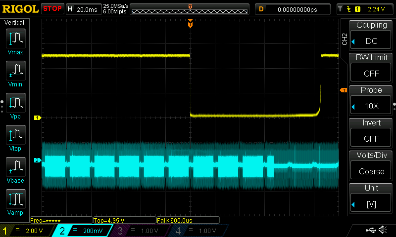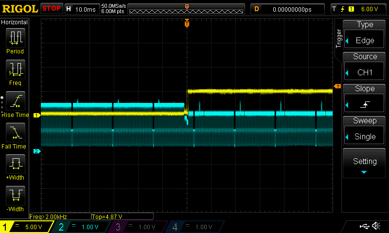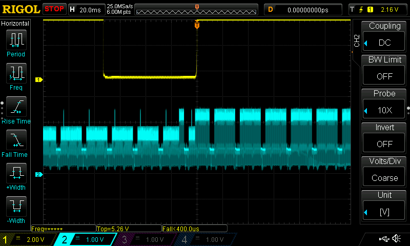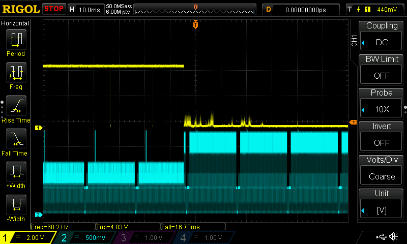 * For Keyrah measurements, I used a double throw switch hooked up to both the fire button/GND pins of the DB9 connector and the oscilloscope to make the point at which the circuit is closed visible on the scope.